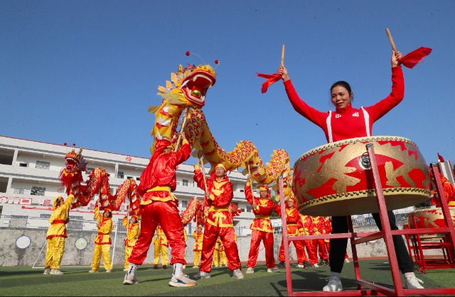 近日,湖南省永州市新田縣蓮花學(xué)校的學(xué)生們?cè)诶蠋熤笇?dǎo)下學(xué)習(xí)傳統(tǒng)舞龍技藝。近年來,該校積極落實(shí)“雙減”政策,利用大課間和課后服務(wù)時(shí)間開設(shè)舞龍課,讓學(xué)生學(xué)習(xí)傳統(tǒng)舞龍技藝,在鍛煉身體的同時(shí)感受中華傳統(tǒng)文化的魅力。劉貴雄 攝