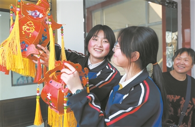 1月3日,正在對(duì)學(xué)生宮燈作品進(jìn)行點(diǎn)評(píng)的刺繡藝術(shù)師、甘肅省張掖市非遺保護(hù)項(xiàng)目王氏宮燈掛件制作技藝傳承人王秀娥(右一)和學(xué)生在一起。張掖市民樂縣職業(yè)教育中心學(xué)校組織非遺傳承人通過學(xué)校社團(tuán)、課外興趣小組等,針對(duì)不同學(xué)齡段的學(xué)生開展常態(tài)化授課,傳承非遺保護(hù)項(xiàng)目,弘揚(yáng)中華優(yōu)秀傳統(tǒng)文化。本報(bào)記者 張學(xué)軍 攝