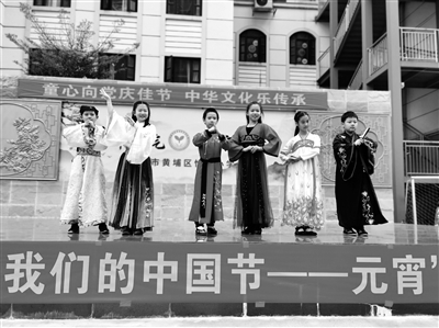 另一方面注重對(duì)當(dāng)?shù)貎?yōu)秀文化的挖掘和利用。怡園小學(xué)地處廣州黃埔,南海神廟是古代海上絲綢之路的起點(diǎn),玉巖書(shū)院傳承著千年書(shū)香文脈,在這片豐富而厚重的嶺南大地上,多姿多彩的廣府文化、客家文化、潮汕文化,無(wú)不在浩瀚的傳統(tǒng)文化中綻放出迷人的魅力,這些都是可以發(fā)掘利用的課程資源。就拿粵語(yǔ)方言來(lái)講,其本身就是重要的傳統(tǒng)文化資源,學(xué)校開(kāi)展古詩(shī)文吟誦教學(xué),發(fā)現(xiàn)用粵語(yǔ)讀誦古詩(shī)更能體現(xiàn)出合轍押韻、朗朗上口,因此教師在古詩(shī)文教學(xué)中不僅教學(xué)生學(xué)習(xí)普通話吟誦,也引導(dǎo)學(xué)生學(xué)習(xí)粵語(yǔ)吟誦。此外,客家山歌被譽(yù)為“漢族傳統(tǒng)歌曲活化石”,教師積極嘗試把客家山歌引入課堂,以激發(fā)學(xué)生對(duì)民族音樂(lè)的學(xué)習(xí)興趣。