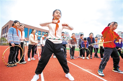 2月7日,江蘇省海安高新區(qū)實(shí)驗(yàn)小學(xué)的孩子們課間在做運(yùn)動(dòng)。新學(xué)期伊始,該校孩子們在老師的組織下開展豐富多彩的體育游戲活動(dòng),盡享快樂校園時(shí)光。