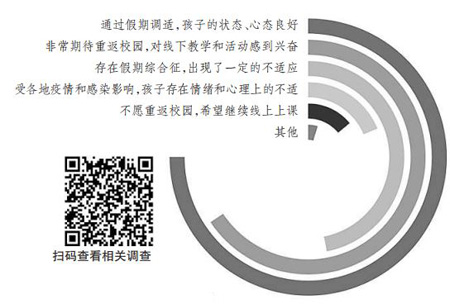 對此,首都師范大學教育學院教授薛海平認為,線上、線下的教學活動具有不同特點。線上學習以居家為主、人際交往少,更加突出個體的獨立性和自主性;線下則以集體活動為主,人際交往增多?!皬木€上居家學習回歸到正常的校園學習生活秩序,需要更加關(guān)注孩子的適應性問題,注重疏解孩子的不良反應,激發(fā)孩子的興趣和活力?!毖F秸f。