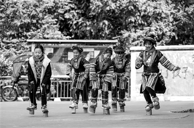 日前,貴州省黔東南苗族侗族自治州從江縣西山鎮(zhèn)中寨教學(xué)點學(xué)生在課外活動中比賽踩高蹺。位于大山深處的西山鎮(zhèn)中寨教學(xué)點,是一所目前僅有1名教師和16名學(xué)生的“微小學(xué)”,全校學(xué)生均為瑤族。近年來,隨著教學(xué)條件逐漸改善,昔日破舊的教學(xué)樓、土操場,變成了三層教學(xué)樓、水泥籃球場。此外,學(xué)校還新修了演出舞臺,學(xué)生有了免費午餐,教師以校為家,村民尊師重教,同時得到社會各界愛心人士的鼎力資助,這所深山瑤寨“微小學(xué)”正在發(fā)生翻天覆地的變化。