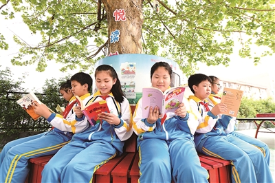 該校充分利用學(xué)校圖書(shū)館資源、教學(xué)樓走廊書(shū)柜、班級(jí)圖書(shū)角,讓學(xué)生能隨時(shí)隨地讀到自己喜歡的圖書(shū)。學(xué)校還鼓勵(lì)學(xué)生在書(shū)包里準(zhǔn)備一本課外書(shū),養(yǎng)成空閑時(shí)間看書(shū)的習(xí)慣?!敖?jīng)典誦讀、主題閱讀、美文精讀、趣味泛讀……豐富的閱讀活動(dòng)將課內(nèi)與課外有機(jī)整合,可以幫助學(xué)生獲取信息、積累知識(shí),更可以幫助學(xué)生提升自我意識(shí),增強(qiáng)探究力和思辨力,讓學(xué)生在不斷的閱讀體驗(yàn)與感受中,自覺(jué)培養(yǎng)閱讀興趣和閱讀習(xí)慣。”馬建國(guó)說(shuō)。