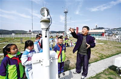 3月22日,工作人員在貴州福泉國(guó)家氣象觀測(cè)站向?qū)W生介紹氣象設(shè)備知識(shí)。世界氣象日臨近,多地組織活動(dòng)普及氣象知識(shí),提高人們對(duì)氣象的關(guān)注。新華社發(fā)
