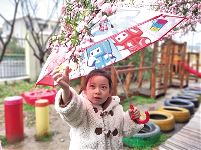 春天里,細(xì)雨綿柔,江蘇省無錫市梁溪區(qū)江南幼兒園大班的孩子興致勃勃地用自己喜歡的方式,在院子里的海棠樹下盡情玩耍,時而尋找與聆聽,時而深吸與輕嗅,真切感受大自然帶來的美好。楊亞麗 文 姜雨鑫 攝