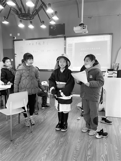 這一天,采用兩名教師包班制。由這兩名教師協(xié)同工作,統(tǒng)攬這一天班級中所有的教學(xué)任務(wù),教師跨學(xué)科教學(xué)。在這樣的包班制下,教師進行跨學(xué)科教學(xué),將不同學(xué)科知識進行連接與整合,將分散的課程知識按主題進行邏輯結(jié)構(gòu)化,并與兒童的經(jīng)驗與生活進行聯(lián)系,將主題作為學(xué)生進行探索學(xué)習(xí)的主要線索。