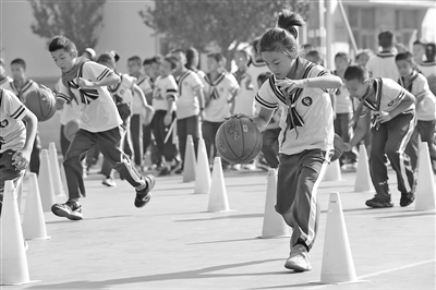 在牟平區(qū)第二實(shí)驗(yàn)小學(xué),考慮到場地不足、學(xué)生年齡和體質(zhì)差異等因素,學(xué)校錯時、分層開展“五彩大課間”體育鍛煉活動,除了500米跑步熱身之外,該校還穿插安排了花樣跳繩、動感籃球等體育活動,確保體育課剛性落實(shí)。“五年級的學(xué)生曲英豪球感特別好,擔(dān)任動感籃球大課間小組長,當(dāng)起了‘小老師’,以前一說話就臉紅的他,現(xiàn)在變得開朗、活潑、自信了?!备毙iL孔令環(huán)說。