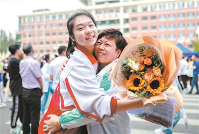 和學(xué)生一一擊掌、擁抱、做最后的叮囑……青島二中語文教師趙春雨從教39年,送過20多屆高考生,今年站好“最后一班崗”?!敖裉焖屯赀@屆兩個班的學(xué)生,我才算是真正退休了。”目送著學(xué)生走進考場,趙春雨期待中滿含不舍。