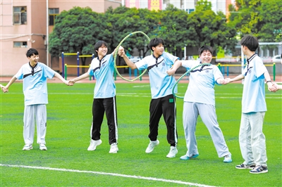 近日,湖北省襄陽市諸葛亮中學(xué)教育集團(tuán)組織九年級學(xué)生在操場上傳遞呼啦圈。當(dāng)日,該校開展“快樂減壓 笑迎中考”考前系列減壓活動,緩解學(xué)生考前緊張焦慮情緒。付曉方 攝