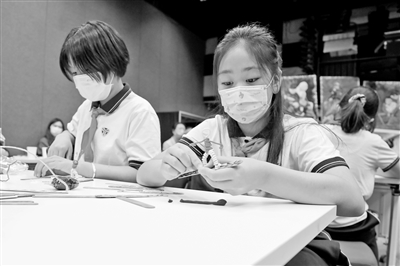 | ②北京市東城區(qū)燈市口小學(xué)學(xué)生在“筑夢冬奧”實(shí)踐課上,制作模型展示體育、勞技、信息技術(shù)等學(xué)科交叉知識(shí)。本報(bào)記者 單藝偉 攝 |