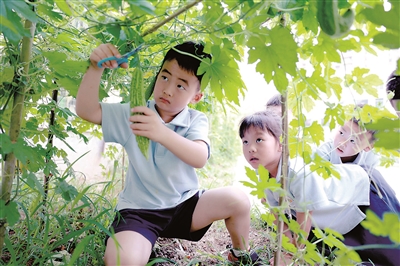 近日,浙江省麗水市縉云縣新區(qū)實驗幼兒園的小朋友們在菜園里采摘瓜果。小朋友們通過育苗、移栽、施肥、澆水,看著瓜果從一顆顆種子成長為一株株小苗再到碩果累累,體驗豐收的喜悅。馬春霞 攝