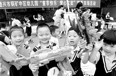 近日,江西省德興市銅礦中區(qū)幼兒園的孩子們在參加跳蚤市場義賣活動。該園舉辦“”幼兒園內(nèi)跳蚤市場義賣活動,上百名大班的小朋友在教師的指導(dǎo)下,義賣分享閑置玩具、舊書籍、手工制作、小飾品等?;顒雍螅變簣@將義賣所得的1300元捐給該市20多年領(lǐng)養(yǎng)80多名殘疾棄嬰的“愛心媽媽”饒梅香。卓忠偉 徐穎 攝