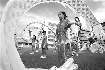 6月25日,在福建省福州市倉山區(qū)教師進(jìn)修學(xué)校附屬第一小學(xué),學(xué)生們正在進(jìn)行新型彩帶龍展示。近年來,該校積極創(chuàng)新陽光體育大課間活動內(nèi)容,將傳統(tǒng)體育項(xiàng)目列為校本課程,聘請了非遺傳承人組建舞龍、舞獅社團(tuán),進(jìn)行基礎(chǔ)專業(yè)技藝訓(xùn)練,讓學(xué)生在豐富多彩的文體活動中鍛煉身體、共享陽光、快樂成長。謝貴明 攝