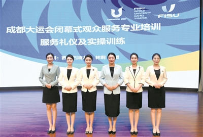林莉是成都大運(yùn)會(huì)聘請(qǐng)的專業(yè)培訓(xùn)講師之一,負(fù)責(zé)相關(guān)人員的禮儀培訓(xùn)。今年3月,她就受邀參與成都大運(yùn)會(huì)觀眾服務(wù)教材的編寫,同時(shí)還帶領(lǐng)團(tuán)隊(duì)先后為開(kāi)閉幕式志愿者、觀眾服務(wù)志愿者、大運(yùn)村志愿者、世界學(xué)術(shù)大會(huì)志愿者和部分城市志愿者進(jìn)行服務(wù)禮儀專項(xiàng)培訓(xùn)20余次。成都大運(yùn)會(huì)上萬(wàn)名志愿者和工作人員,都是林莉的“學(xué)生”。
