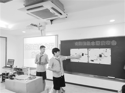 以“技術(shù)工程”模塊為例,為迎接杭州亞運(yùn)會(huì),全校發(fā)起綠色低碳亞運(yùn)挑戰(zhàn)賽。學(xué)生陶追遠(yuǎn)發(fā)現(xiàn),冬天在家里洗手時(shí)水特別冷,每次燒熱水又感覺浪費(fèi),一場(chǎng)關(guān)于“太陽能熱水器”的研究之旅就此啟動(dòng)。
