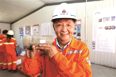 鉆探過程中有兩個(gè)場(chǎng)景讓我很難忘。一個(gè)是學(xué)生發(fā)現(xiàn)第一層火山灰的場(chǎng)景。當(dāng)時(shí)他雖然感覺發(fā)現(xiàn)的物質(zhì)比較特殊,但不能確定,就交給老師看。我們馬上制作巖石薄片并用顯微鏡觀察,當(dāng)確定是火山灰無疑時(shí),大家都?xì)g呼起來。另外一個(gè)場(chǎng)景就是松科二井打到7018米深度時(shí),非常不易,最后那段巖心取出來的時(shí)候,大家就像火箭發(fā)射前倒計(jì)時(shí)一樣一起喊:“10,9,8,7……3,2,1!”我托著巖心留下了一張照片,后來這張照片入選了慶祝改革開放40周年大型展覽。