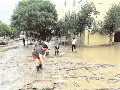 洪水退去后,8月5日,涿州教育系統(tǒng)所有教師自愿放棄暑期休假返回工作崗位,投入到校園清淤工作中。