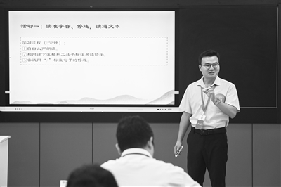 日前,全國中小學(xué)青年教師教學(xué)競賽決賽在浙江嘉興開賽,圖為中學(xué)語文組一名教師在進行教學(xué)展示。 本次競賽以“上好一門課”為理念,共設(shè)小學(xué)組、中學(xué)語文組、中學(xué)數(shù)學(xué)組、中學(xué)英語組、中學(xué)思想政治組五個組別,來自全國各地的150余名選手進入了決賽。