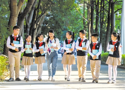 你曾經(jīng)提出“全員思政、全科思政、全程思政”的教改模式,把特色思政貫穿始終;拓展課程資源,主編紅色校本教材,開辦紅領(lǐng)巾電視臺,組織紅色主題少先隊(duì)班隊(duì)會,給孩子們的心靈印上“中國紅”,根植愛國之心,堅(jiān)定報(bào)國之志。