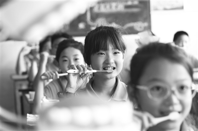 9月20日是全國愛牙日。河北唐山多地學校開展教育宣傳活動,講解護牙知識,倡導孩子們養(yǎng)成愛牙護牙的好習慣。圖為豐潤區(qū)王官營小學學生學習正確的刷牙方法。