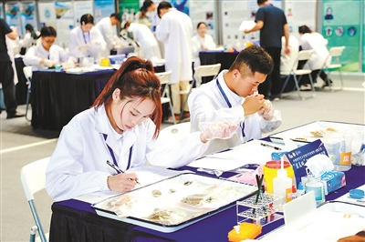 近日,中國研究生鄉(xiāng)村振興科技強農(nóng)+創(chuàng)新大賽“集美杯”第三屆漁菁英挑戰(zhàn)賽決賽舉行,比賽由中國學(xué)位與研究生教育學(xué)會、中國科協(xié)青少年科技中心主辦,集美大學(xué)、大連海洋大學(xué)承辦。33家高校、科研院所的420多名研究生參加比賽。圖為在專業(yè)技能競賽環(huán)節(jié),學(xué)生在辨別飼料原料。本報記者 熊杰 攝