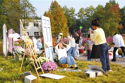 10月29日,浙江農(nóng)林大學(xué)師生與菊花合影。當(dāng)日,在該校園林學(xué)院教育教學(xué)實(shí)踐基地里,300多個(gè)品種的數(shù)萬朵菊花爭(zhēng)相開放,把秋季校園點(diǎn)綴得格外美麗,吸引眾多師生駐足觀賞。