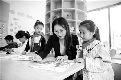 10月28日,在江蘇省如皋市長江鎮(zhèn)平南社區(qū)書屋內(nèi),黨員教師志愿者指導(dǎo)社區(qū)學(xué)生繪制主題圖畫。當(dāng)天,如皋師范學(xué)校第三附屬小學(xué)組織黨員教師走進(jìn)平南社區(qū)書屋,開展“強(qiáng)國復(fù)興有我 爭做新時(shí)代好少年”主題活動(dòng),通過指導(dǎo)學(xué)生繪制主題圖畫、書寫主題作品等,增強(qiáng)學(xué)生愛國意識(shí)。 徐慧 攝
