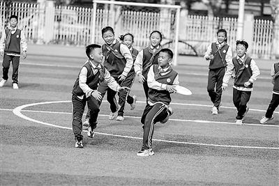 如今,在全區(qū)各學(xué)校,每當(dāng)大課間鈴聲響起的時候,學(xué)生們都會歡呼雀躍地奔向各自的活動場地,一起隨著音樂開展各種運(yùn)動項(xiàng)目,打棒壘球、射箭、踢足球、跳長繩、踢毽子……