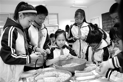 近日,山東省威海市文登區(qū)天福小學學生在勞動課上開展剝花生米、剝玉米棒比賽。該校因地制宜開發(fā)勞動教育課程,讓學生體驗勞動的辛苦,增強珍惜糧食的意識。于文麗 攝