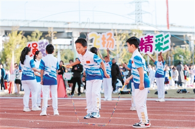 操場(chǎng)上,一條條繩子上下翻飛,交互繩平跳、高級(jí)繩中繩……這些讓人大呼“炫酷”的跳繩場(chǎng)景,是浙江省寧波市修人學(xué)校大課間的常態(tài)。這所地處寧波市江北區(qū)最北端的農(nóng)村學(xué)校,多次在省市花式跳繩比賽中獲得佳績(jī)。這是江北區(qū)讓每所學(xué)校、每個(gè)學(xué)生都有出彩機(jī)會(huì)的生動(dòng)體現(xiàn)。