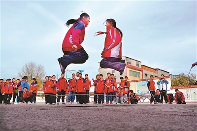 12月5日,湖北省十堰市鄖陽區(qū)柳陂鎮(zhèn)中心小學(xué)學(xué)生在進行趣味體育鍛煉。入冬以來,學(xué)校每天在課余時間開展跳繩、跳皮筋等豐富多彩的趣味體育活動,讓學(xué)生們在鍛煉身體的同時,體驗運動之樂。楊顯有 攝