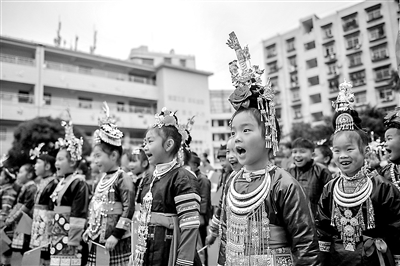 12月5日,在貴州省黔東南苗族侗族自治州從江縣丙妹鎮(zhèn)中心小學(xué),侗族學(xué)生在演唱侗族大歌。當(dāng)天,學(xué)校舉辦第一屆校園體藝節(jié),學(xué)生們進(jìn)行了民族文化展示、模擬斗牛展演、蘆笙吹奏等具有地方特色的民族文化展演。近年來,該校結(jié)合地方民族文化,將民族傳統(tǒng)文化引入校園,廣泛開展形式多樣的體育賽事和藝術(shù)類活動(dòng),讓學(xué)生在豐富多彩的活動(dòng)中鍛煉身體,促進(jìn)快樂成長。