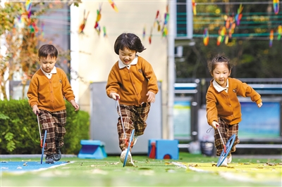 日前,山東省青島市李滄區(qū)青峰路幼兒園開展了豐富多彩的趣味戶外活動(dòng),孩子們通過參加曲棍球比賽、跳房子等戶外游戲,鍛煉身體靈敏性和協(xié)調(diào)性,培養(yǎng)勇敢拼搏、團(tuán)結(jié)協(xié)作、不怕困難的意志品質(zhì)。圖為孩子們進(jìn)行滾鐵環(huán)比賽。通訊員 張鷹 攝
