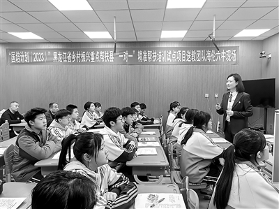 近日,黑龍江省雞西市第十八中學(xué)赴黑龍江省海倫市,開展“一對(duì)一”精準(zhǔn)幫扶送教下鄉(xiāng)活動(dòng)。圖為雞西市“國培計(jì)劃”送教下鄉(xiāng)優(yōu)秀學(xué)科專家、雞西十八中語文教師張娜作為省派專家在海倫市第六中學(xué)開展送教援培、現(xiàn)場(chǎng)教研活動(dòng)。