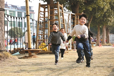 浙江省諸暨市暨南街道街亭幼兒園的孩子們正在進(jìn)行體育活動(dòng)。為了進(jìn)一步增強(qiáng)孩子們的體質(zhì),該園利用戶(hù)外各種器械,設(shè)置有趣的游戲,吸引孩子們積極參與。