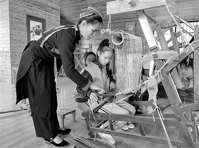 龍州縣有著豐富的非物質文化遺產(chǎn),其中地域特色明顯的天琴演奏、壯錦技藝等深受師生喜愛。該縣各中小學校堅持“走出去”“請進來”的培訓方式,邀請本土“非遺”傳承人走進校園,向師生手把手傳授“非遺”技藝,選派90余名優(yōu)秀教師向“非遺”傳承人學藝,培養(yǎng)出一支專業(yè)技術過硬的“非遺”教育與傳承團隊。