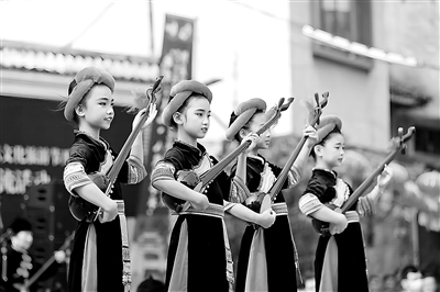 天琴,在壯語中稱“鼎叮”,是壯族先民祈求風調雨順、五谷豐登的演奏器樂。在龍州縣民族中學,當?shù)氐奶烨僦谱鱾鞒腥饲厝A北一邊彈奏,一邊向學藝教師講述實操持琴、按弦、演奏的方法,一曲曲悅耳動聽的天琴彈唱,繚繞于教室間。目前,龍州縣有近10所中小學校建立了天琴培訓活動基地,大力培養(yǎng)龍州天琴彈奏后備力量。