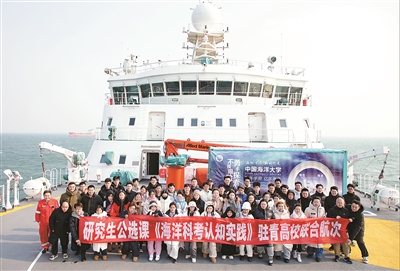 從2020年開始,每年秋季學(xué)期,中國(guó)海洋大學(xué)研究生院都會(huì)面向全校和其他高校及科研院所的研究生,推出為期兩天一夜的中國(guó)海洋大學(xué)“海洋科考認(rèn)知實(shí)踐”公選課。公選課消息一經(jīng)發(fā)布,就會(huì)被守在電腦前的學(xué)生“一搶而空”。這門課至今已經(jīng)開展40余批次,來自全國(guó)20余所高校和科研院所的4000余名師生登船學(xué)習(xí)。