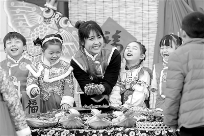 1月17日,在浙江省湖州市德清縣武康街道千秋幼兒園,教師向小朋友介紹做臘八粥所選用的食材。當日,該園開展“萌娃學民俗 開心迎臘八”活動,小朋友通過認食材、做臘八粥、印福字等民俗活動,感受中國傳統(tǒng)文化的獨特魅力。 王正 攝