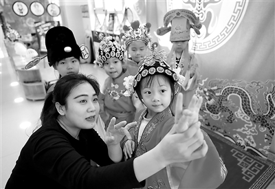 近日,河北省淶水縣第二幼兒園教師輔導(dǎo)小朋友學(xué)習(xí)戲曲表演。該園充分挖掘地域文化資源,以大班為起點(diǎn)、以樓道為場(chǎng)所,深入探索開展“尋脈中華傳統(tǒng)”項(xiàng)目課程,讓每個(gè)孩子觸摸歷史,感知中華優(yōu)秀傳統(tǒng)文化的深厚韻味。