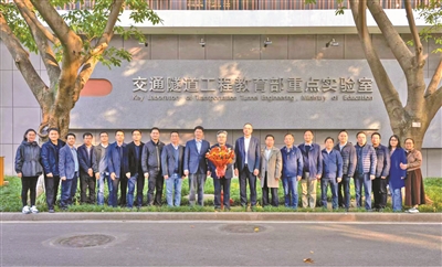 同年12月4日,西南交通大學(xué)黨委書記余敏明、校長閆學(xué)東一行來到“極端環(huán)境巖土和隧道工程智能建養(yǎng)全國重點實驗室”,看望慰問新當(dāng)選中國工程院院士的何川。