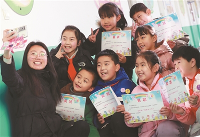 “來來來,看鏡頭,一、二、三……茄子!”一群小腦袋和老師擠在一起,快門按下,笑容定格。照片記錄了河北省淶水縣三坡學(xué)區(qū)馬各莊小學(xué)三年級(jí)孩子們期末“發(fā)獎(jiǎng)”的快樂時(shí)光。