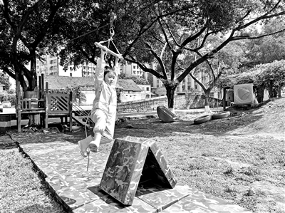 活動(dòng)過(guò)程:為了支持孩子們實(shí)現(xiàn)心愿,我們?cè)谟變簣@里增添了“極速滑索”游戲項(xiàng)目,孩子們玩得花樣百出、樂(lè)此不疲。教師和孩子們一起,利用戶外的小土坡和攀登架,在草坪四周的大樹(shù)上,拉起了兩條結(jié)實(shí)的滑索道。在高高的滑索上,孩子們握緊把手騰空而起,一飛沖天,心中有興奮和雀躍,更感受著些許的緊張和刺激,對(duì)飛行員叔叔的感知也從“眼見(jiàn)”“耳聞”,轉(zhuǎn)化為“親歷”“實(shí)感”。