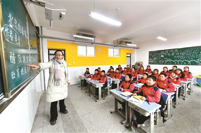 ?、匍_學(xué)第一天,積石山縣石塬鎮(zhèn)肖紅坪小學(xué)教師在修繕一新的教室里給學(xué)生上課。新華社記者 郎兵兵 攝
