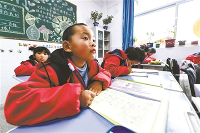 ②積石山縣石塬鎮(zhèn)肖紅坪小學(xué)的學(xué)生在上數(shù)學(xué)課。新華社記者 郎兵兵 攝