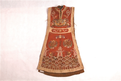 京族的繡花彩是京族在過哈節(jié)祭海神時,哈公所穿。京族的先民在秦漢時代屬南越國,后歸交趾郡?,F(xiàn)今居住在我國廣西防城港的京族,是16世紀(jì)初從越南北部的涂山遷徙而來,到達(dá)我國廣西防城港后定居下來,積極融入漢文化中,繡花彩法衣有著明顯的中華文化特征。