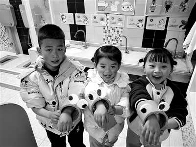 智慧緣起:自理能力培養(yǎng)是幼兒成長過程中不可或缺的一環(huán),能夠促進(jìn)幼兒動(dòng)手能力的發(fā)展,也能讓幼兒更加自信,這也符合我園“因自理而自立,因自立而自信”的教育理念。秋冬季節(jié),幼兒衣物逐漸加厚,洗手時(shí)需要挽起衣袖避免打濕。在這個(gè)過程中,我們發(fā)現(xiàn)幼兒的主動(dòng)性較弱,出現(xiàn)了一系列需要解決的問題。一是幼兒形成了依賴感,不會主動(dòng)挽袖子;二是等待時(shí)間過長,先完成的幼兒無事可做;三是增加了教師的負(fù)擔(dān)。那么,如何提高幼兒洗手的積極性?結(jié)合幼兒年齡特點(diǎn),我們認(rèn)為,有趣的、操作性強(qiáng)的方式才能受到幼兒歡迎。通過與班級教師審議、與幼兒共同商討,我們選出了幼兒喜歡的青蛙形象,制作出可以將手伸進(jìn)去的大嘴巴青蛙,提醒幼兒在洗手時(shí)注意挽高衣袖。