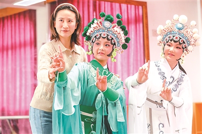 近日,在浙江省湖州市德清縣新安鎮(zhèn)勾里中心學校,戲曲教師在指導學生練習戲曲。近年來,該校積極開展“戲曲進校園”活動,聘請專業(yè)戲曲演員每周固定時間進校傳授,讓學生近距離感受戲曲文化的魅力,增進對傳統(tǒng)國粹的了解和傳承。王樹成 攝