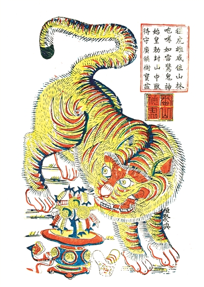 木版年畫(huà)的出現(xiàn)與雕版印刷密切相關(guān)。我國(guó)的雕版印刷興于唐,盛于宋。在宋代,逢到歲時(shí),以木版印刷的神靈祈求平安的習(xí)俗已出現(xiàn)。但是,更完備的張貼年畫(huà)的風(fēng)俗真正形成應(yīng)是明末清初。尤其是“康乾盛世”,使得這五彩繽紛的風(fēng)習(xí)普及九州廣大的鄉(xiāng)野。就其本質(zhì)而言,木版年畫(huà)不是單純的藝術(shù)。在民間的生活中,它更是一種風(fēng)俗的需要,是年俗的方式與載體。