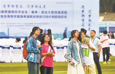當(dāng)日,重慶市2024屆普通高校畢業(yè)生(春季)就業(yè)大型雙選活動暨百萬高校畢業(yè)生等青年留渝來渝就業(yè)創(chuàng)業(yè)行動計劃啟動儀式在重慶大學(xué)舉行。來自重慶市70余所高校的一萬多名畢業(yè)生參加現(xiàn)場雙選活動。